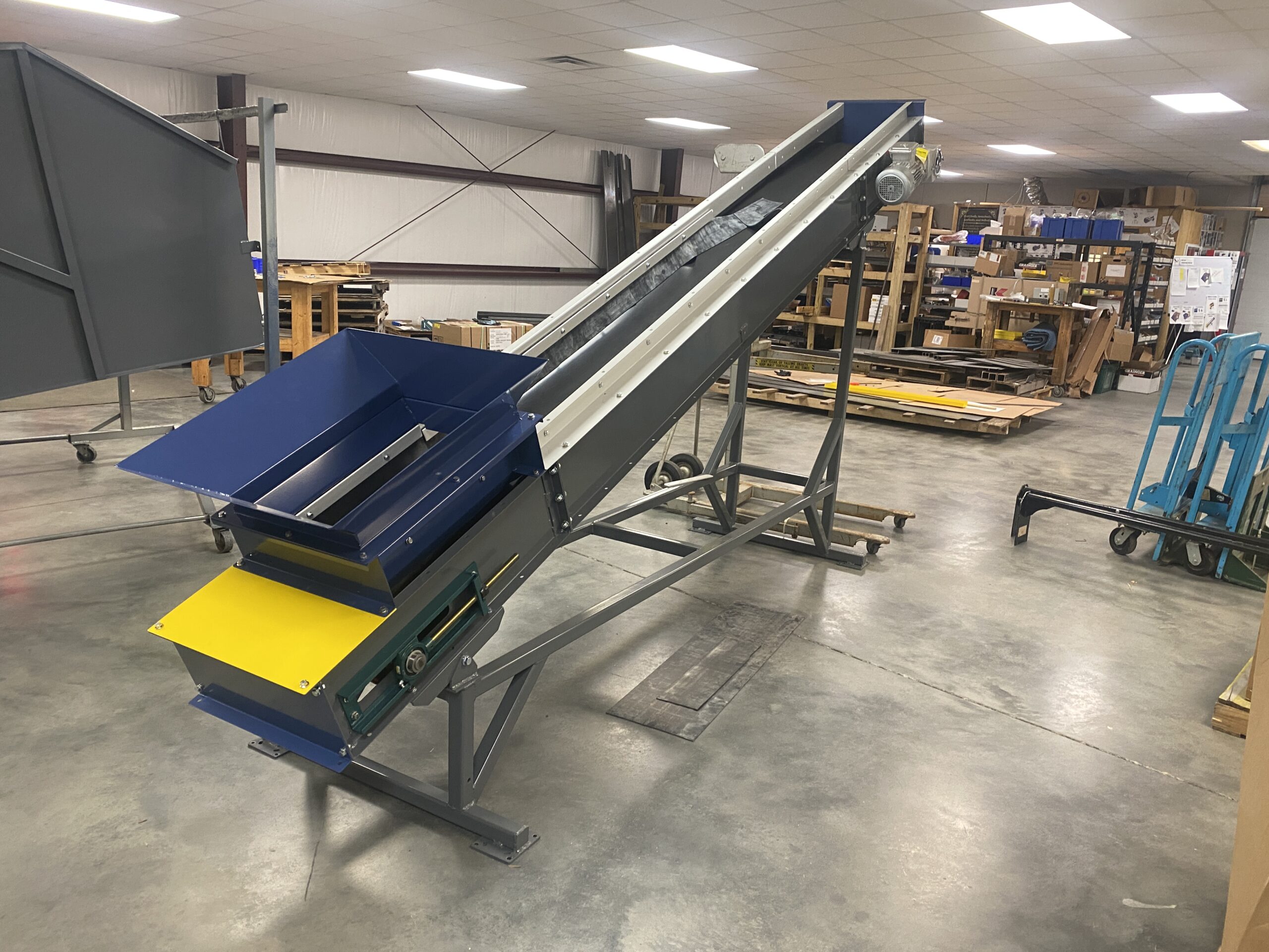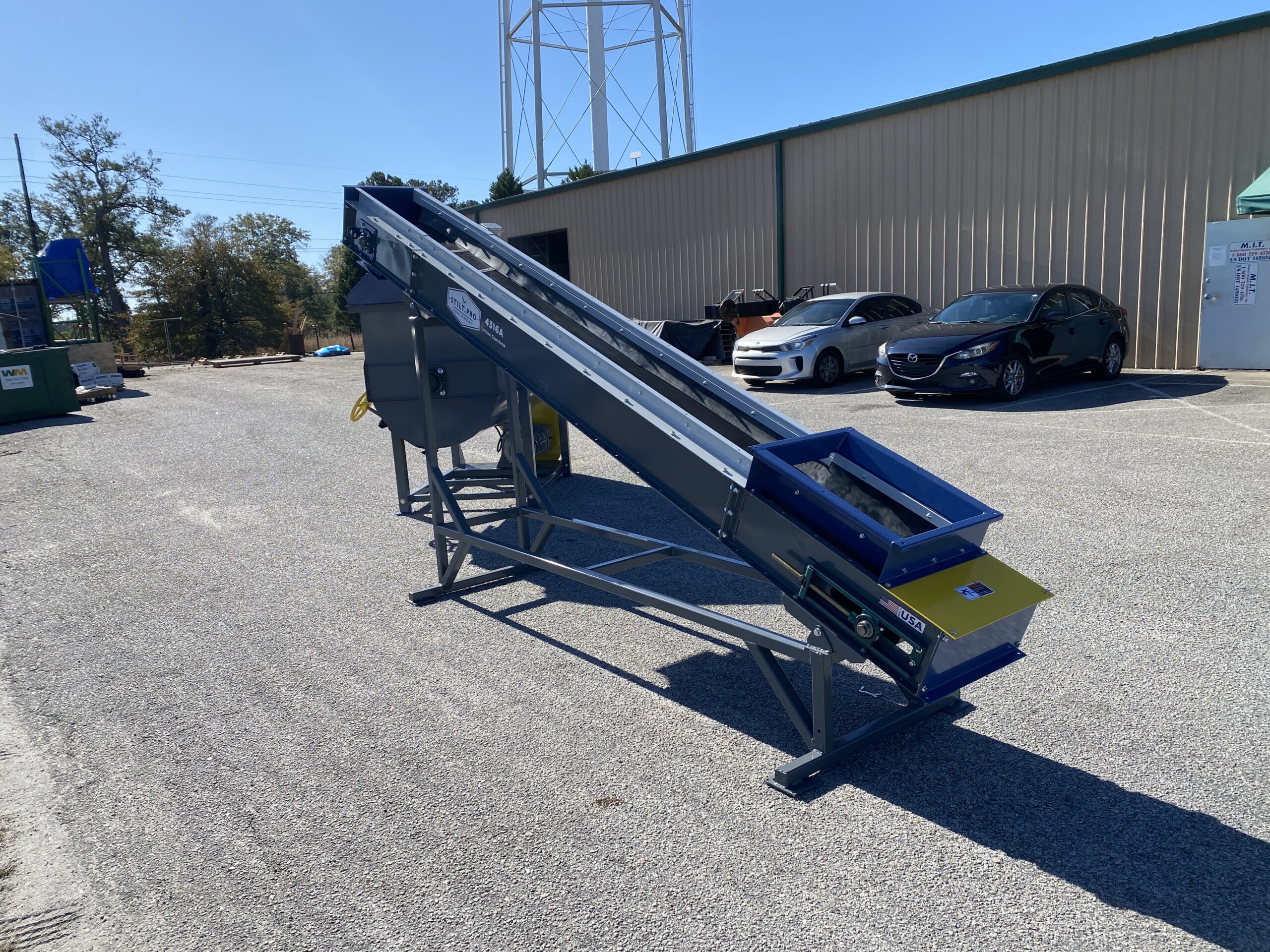 STILT PRO Soil Conveyors efficiently move a variety of bulk materials and are ideal for loading trucks or soil carts and for stockpiling media. These conveyors will take discharge from a STILT PRO Mixer or Bale Processor. These conveyors are made-to-order to meet your incline requirements and discharge heights. Upturned slider sides create a troughing belt, and load skirts are optional to increase the capacity of the conveyor. Other options include cleated belt, dust covers, load hopper and more.