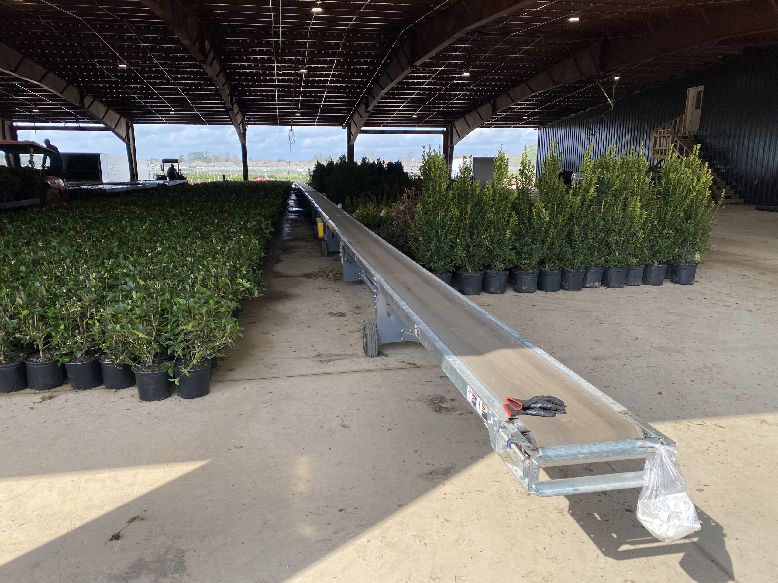 STILT PRO Shipping Conveyors are lightweight and portable, offering wheels and handles making them easy to move. This Conveyor is well suited to move plants, boxes, pots or trays straight into, or out of a truck. Its pullcord feature allows an operator in the truck to start or stop the conveyor by pulling the string that runs the length of the conveyor. The shipping conveyors can also be run in either direction, depending on your needs.